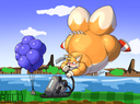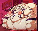 Back during the Tumblr golden age, I remember an art of a drunk anthro female Flareon, naked and front facing the viewer, with a big beer belly and holding a pack of beer cans in one hand.