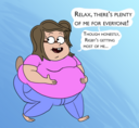 There is a concept that I see very few artists doing, of Glamrock Chica's waist wrap thing, being actually a corset to hide a plump potbelly, and she is a closeted fatass that stuffs herself in pizza everynight.