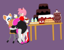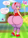 Drawing of a incredibly fat elephant charachter saying "no amy i dont know where sonic is" whilst sonic is behind her licking her butthole It was on furaffinity.net
