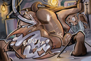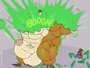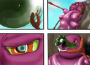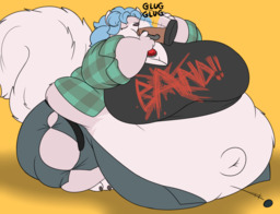 There’s this comic I’m looking for where this fox or wolf character is sacrificed to a giant slime monster. It pumps slime into his mouth and up his butt. He swells up to a huge size before he explodes! I can’t remember the artist’s name, it was from over 10 years ago