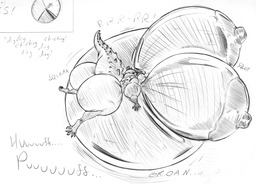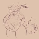 >>80951 Not gonna lie anon the middle two panels of this are the perfect amount of suspension! Good roundness,good puff bonus points alone for the tail inflation but the toe beans puffing up too is glorious and the gorgeous delicious look on his face as he's about to blow! You can see the strain and the moment the pressure makes this poor lads mind break and melt into both more than pleas to be popped like the toy he is. Bravo although I wish it was colored in some fantastic sketch work! I give it 7 plaps out of 10