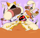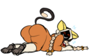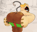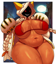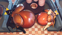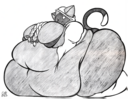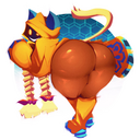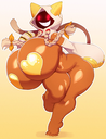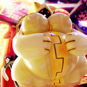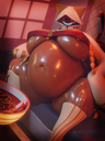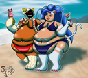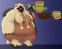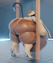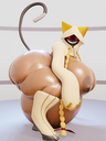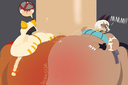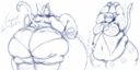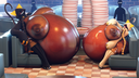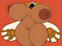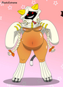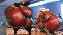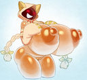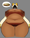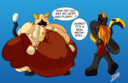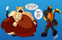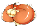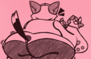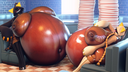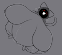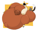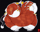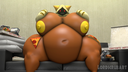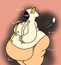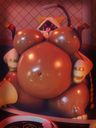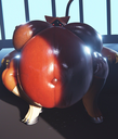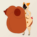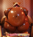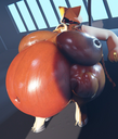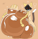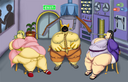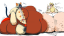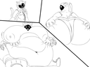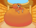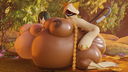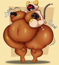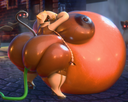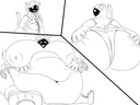 Her straps break open as her belly spills to the ground, her ass growing fatter and fatter as she keeps gorging on whatever food is there
