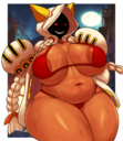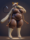 Then the rest of her clothing rips apart from her immensely fat body, her thigh warmers shred with her legs glorping up, her coat shreds as the rest of her body grows and grows