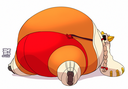 Gut hitting the edge of it but still growing and growing until more than half her body is her huge belly