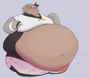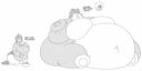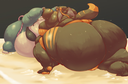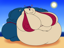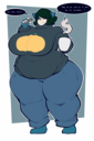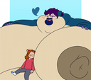 her gargantuan belly, pushing between her hammy thighs. By the time he