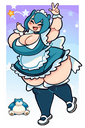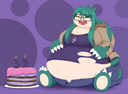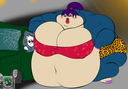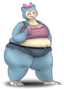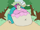 Her blubbery fupa squelched and wobbled as the tendril worked its way in and out her lard-buried lips. Sating her need, and at the same time