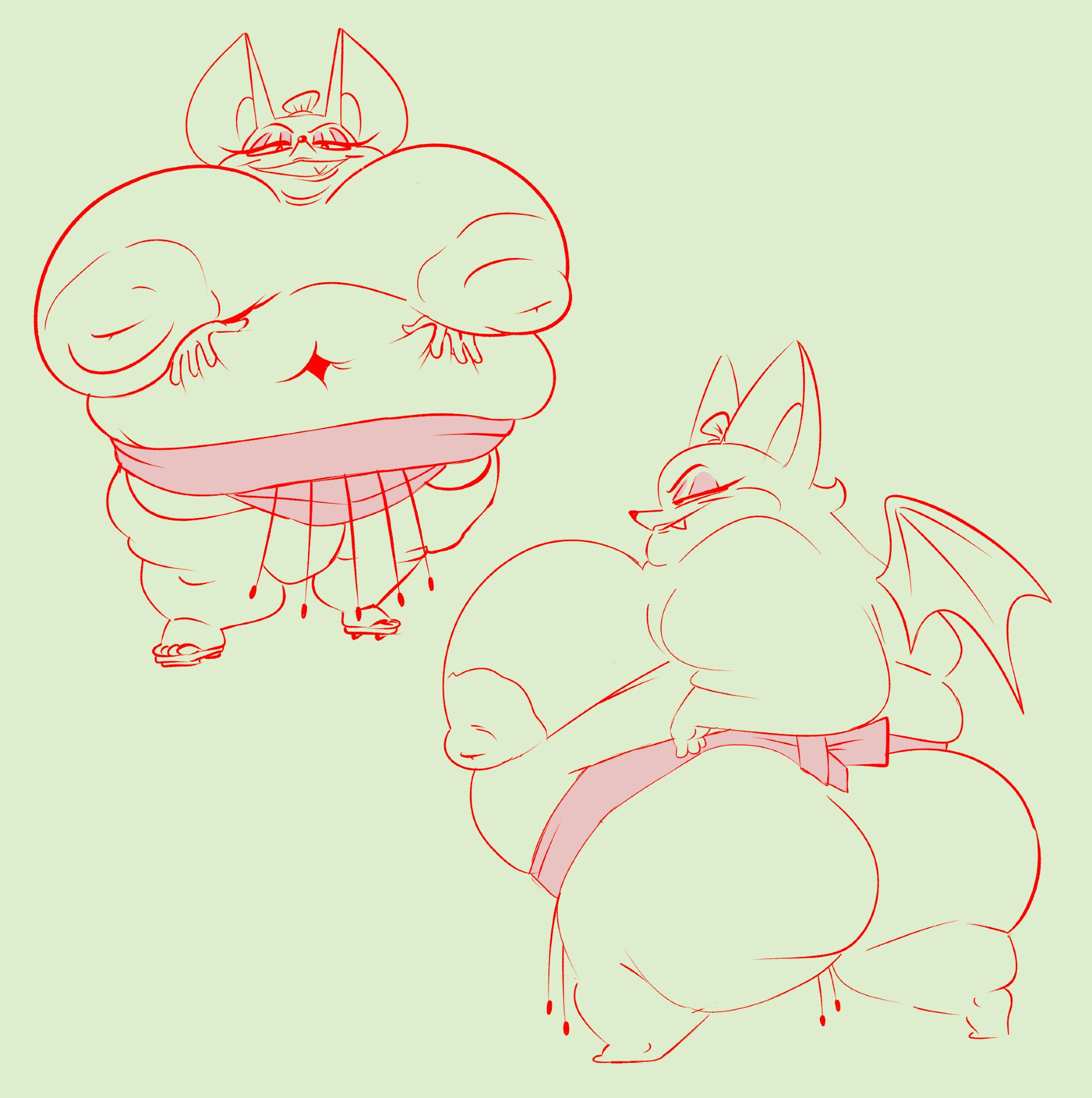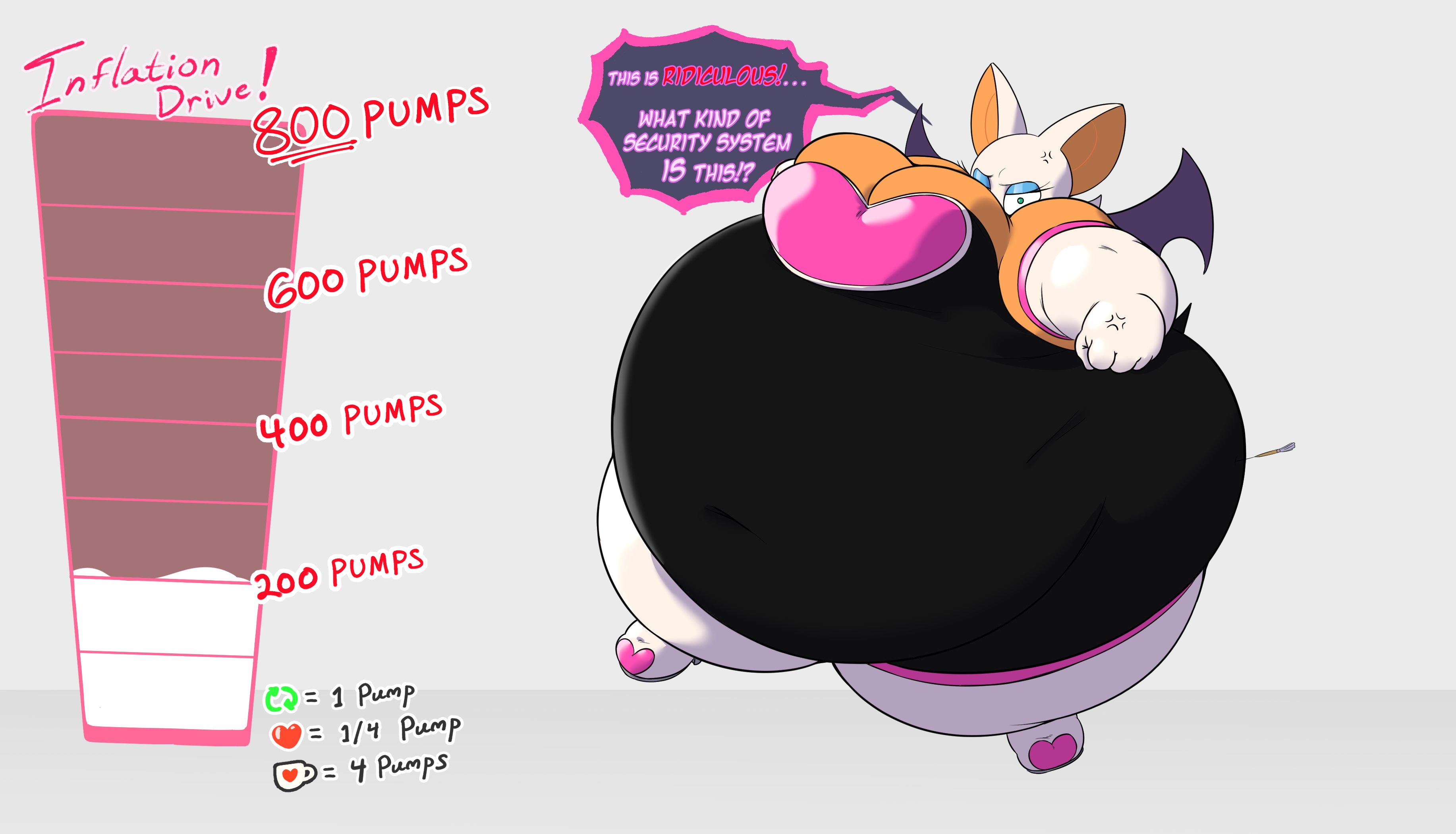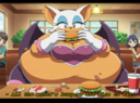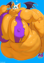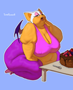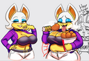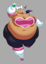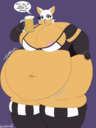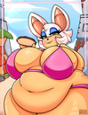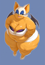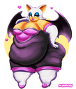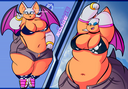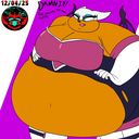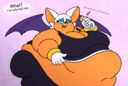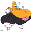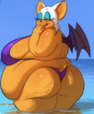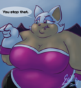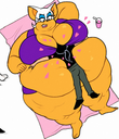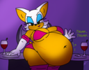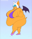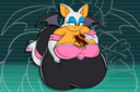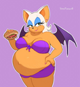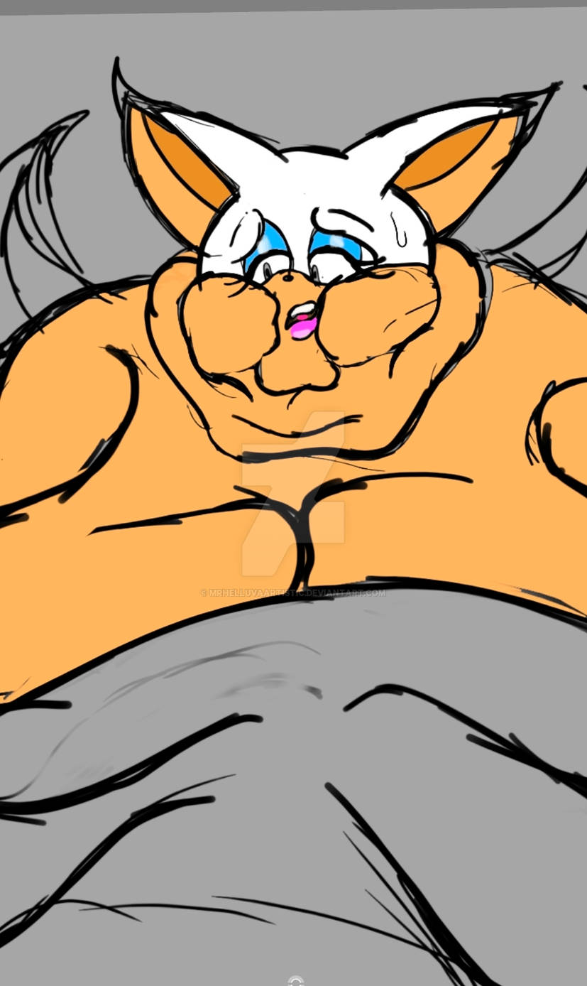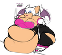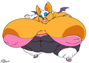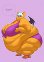 The temperature was dropping, and winter was rapidly approaching. Baggy and warm clothes were off the charts in sales, everyone was wanting to warm up, buy unfortunately this style did not suit the one who desired to have her skin exposed to the public. Rouge, once an infamous treasure hunter, now the largest bat around, had a tendency of exposing her curves in the public, despite her super size figure she'd show no hesitation to flash her rolls, in fact this would influence the beauty standards, making obese women more of a standard when coming to attractiveness. Now onto the main part of the story, the rotund beast refused to give into Winter, she wanted to remain in nothing but bras and panties, luckily the intelligent bat came up with a solution. Exponentially increasing her body mass would result a more warm coating of natural body fat, and what better thing to have than hot chocolate, which would also heat you up. She gulped down gallons of hot chocolate, her Plump fat bombarded the space around her, coming out like tsunamis, and her breast spilt from her bra, and her panties were becoming more difficult to see, showing only her massive monstrous cheeks. The bat was a behemoth, ravenous rouge, consumer of all that was fattening, her desperate attempts of fattening herself were successful as her rapid growth continued, each gulp she took was enough to make her whole body shake, as well as the ground. Soon enough she was massive, vastly larger than her original size, but she had achieved her quite simple goal of being plump enough to withstand the cold whilst wearing some sexy and revealing clothes.