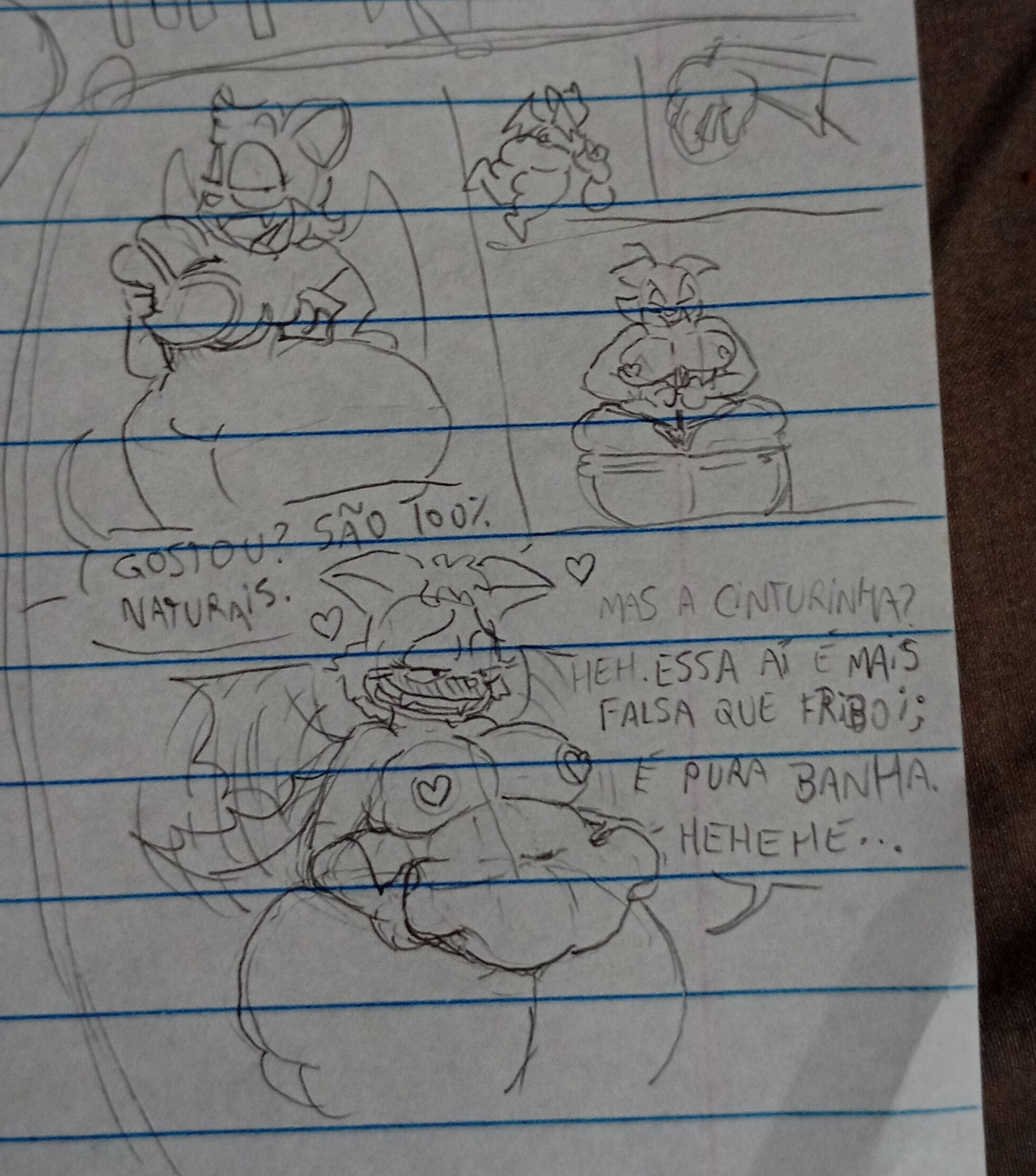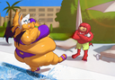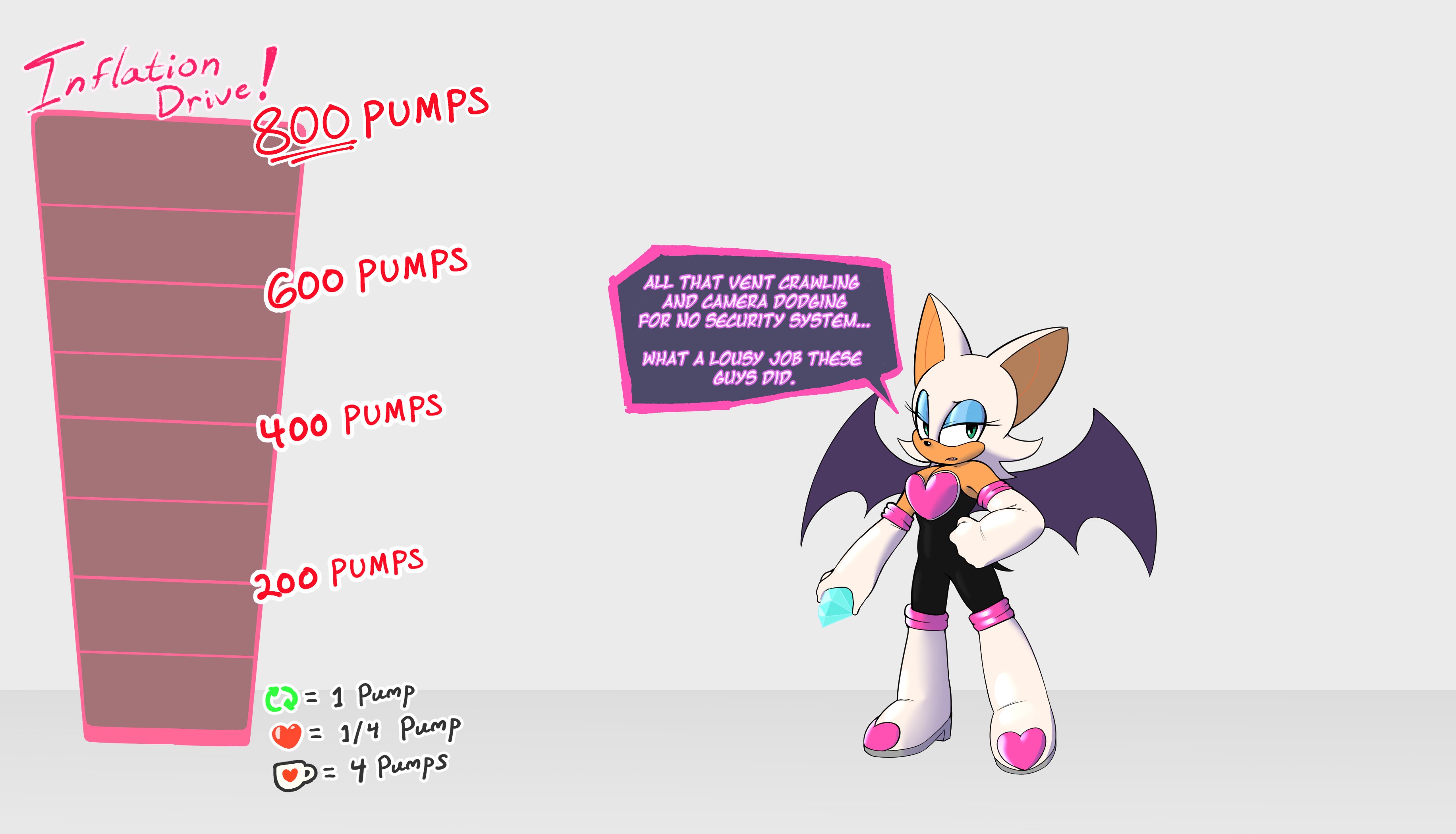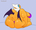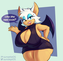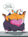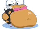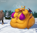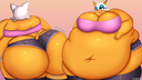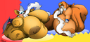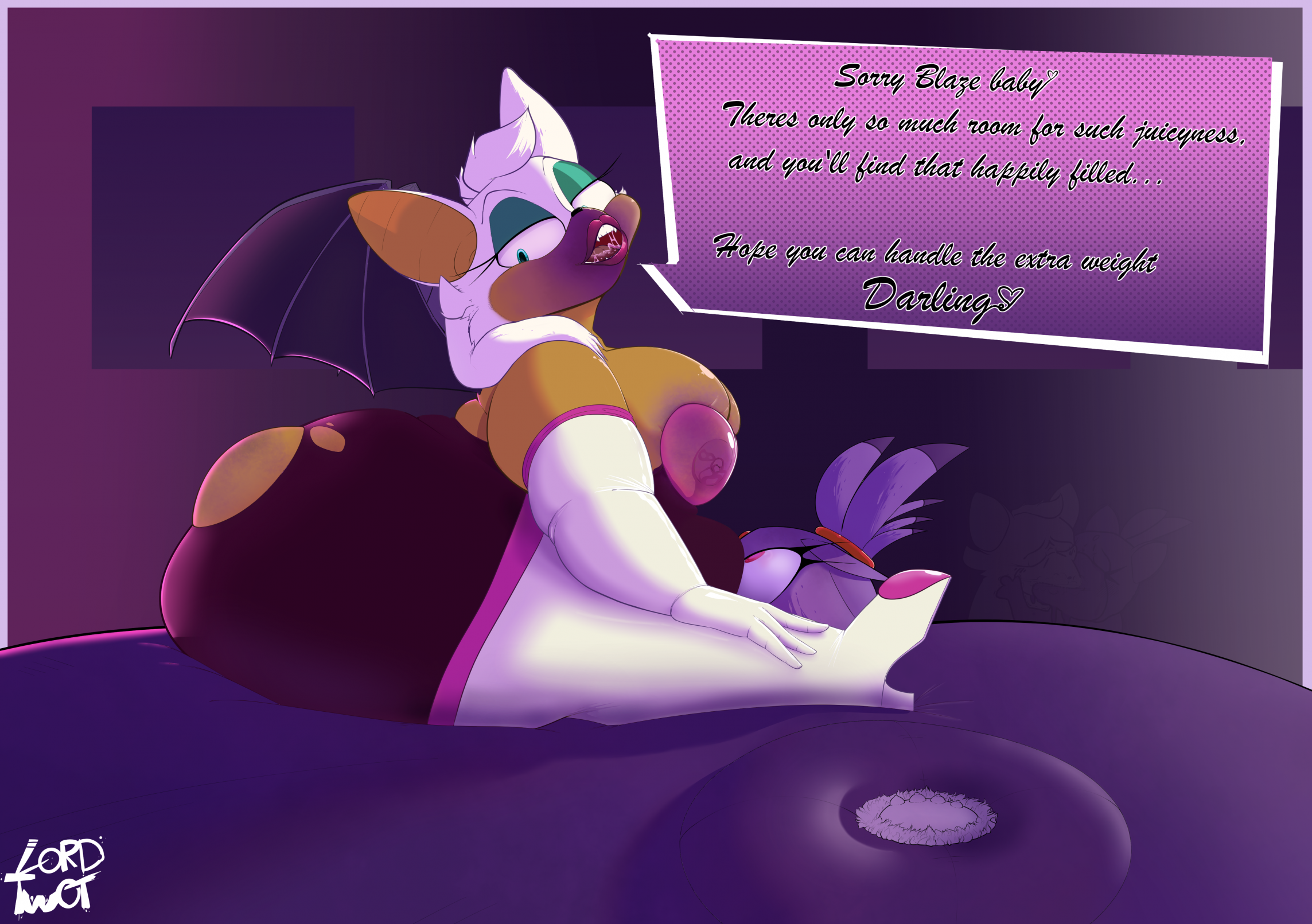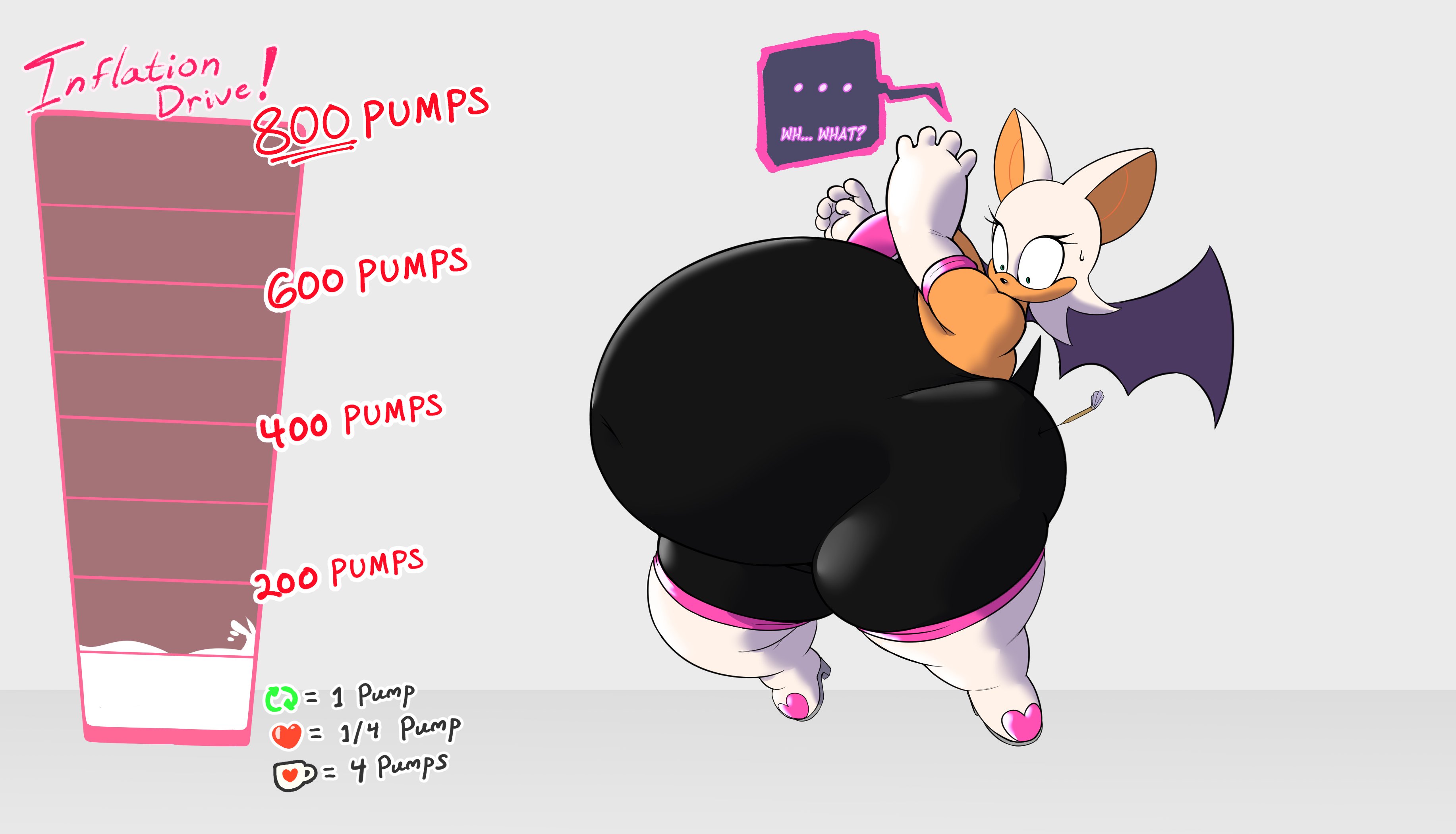 The temperature was dropping, and winter was rapidly approaching. Baggy and warm clothes were off the charts in sales, everyone was wanting to warm up, buy unfortunately this style did not suit the one who desired to have her skin exposed to the public. Rouge, once an infamous treasure hunter, now the largest bat around, had a tendency of exposing her curves in the public, despite her super size figure she'd show no hesitation to flash her rolls, in fact this would influence the beauty standards, making obese women more of a standard when coming to attractiveness. Now onto the main part of the story, the rotund beast refused to give into Winter, she wanted to remain in nothing but bras and panties, luckily the intelligent bat came up with a solution. Exponentially increasing her body mass would result a more warm coating of natural body fat, and what better thing to have than hot chocolate, which would also heat you up. She gulped down gallons of hot chocolate, her Plump fat bombarded the space around her, coming out like tsunamis, and her breast spilt from her bra, and her panties were becoming more difficult to see, showing only her massive monstrous cheeks. The bat was a behemoth, ravenous rouge, consumer of all that was fattening, her desperate attempts of fattening herself were successful as her rapid growth continued, each gulp she took was enough to make her whole body shake, as well as the ground. Soon enough she was massive, vastly larger than her original size, but she had achieved her quite simple goal of being plump enough to withstand the cold whilst wearing some sexy and revealing clothes.