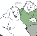 Long shot, but I've been looking for a fat Asriel pic and I'm hoping someone here might know it or have it saved. A fat Asriel looking up at a pie that Toriel is holding up over him. He's much shorter than her.