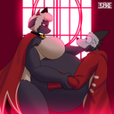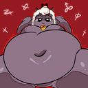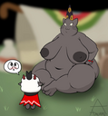 I wonder if she’ll be ok if I combined fat, vore, and preg with her~. (Art Cred: Avi on X/Twitter.)