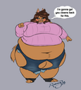 >>84654 Roary's two stories about Naomi and Patrick, The Bush and Naomi's Story (Just-for-fun), solidified their places in the blueberry fetish for me, to be honest. I love reading about Naomi's whirlwind of emotions as she grew into a blueberry, and Patrick's attempts to help or comfort her as she changes into a grotesque, impossibly massive imitation of a fruit stretched beyond her physical limits. The confusion Naomi feels as she watches her fur coat change from gold to blue, her blushing upon seeing her swollen ass jiggling with juices and drooping down to her knees, her fear mounting as she loses control of her growing stomach, and the dread that comes as she realizes her nigh spherical furry blueberry ball of a body could burst at any moment while Patrick frantically searches for a solution. It's fetish kino. Up there with Deep Blue in terms of blueberry storytelling. Gets me hard but keeps me invested in the characters enough to keep me reading. >At this point I wouldn't even mind if other people started drawing her lol I think I remember Thatoneaceguy drawing her at one point. Forgot where I saw the image, though.