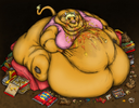 That last burp sending me over the edge. I feel my dick leak its load into my fatpad. I wish it was