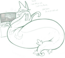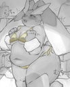 Hi, I remember seeing some arts here of a fat Lucario, locked in his house, watching TV and depressed. They were in black and white. Can you help me find them?