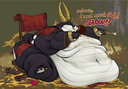 There was a picture from Ramzi of his OC Tay the Bear where his character said "How am I supposed to draw?" And he was too fat to move. It must have been deleted from KOfi
