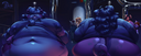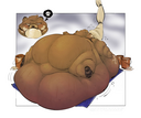 I know it was about a female anthor pokemon, most likely a pikachu/raichu college student who pigged out in school, and it described in detail her struggling to get out of bed and across the room to get to her mobility scooter.
