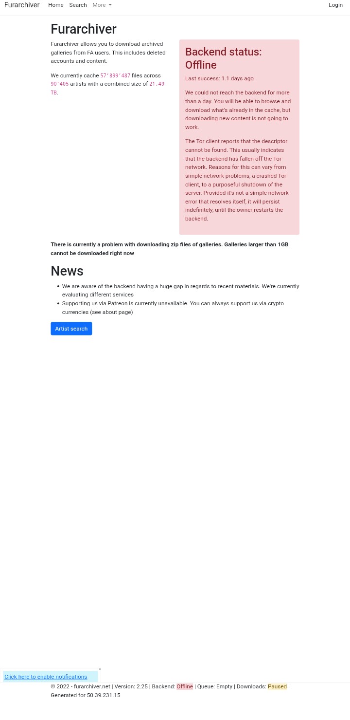 >>97832 >>97833 Okay, buddy. Four days since the last success? Go and complain to the guys running Furarchiver. Write them an email and cross your fingers hoping they won't call you a retard and laugh in your face.