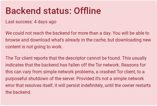 >>97196 So, it is unnecessary. Because it has been offline after a week+ and it became back online and now it's offline for nearly 2 days.