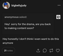 Dude it's her choice, she doesn't want to post content anymore then fine I hope she can find something else that can make her happy. You acting like she's a bitch because she's upset after a breakup is not helping matters either.