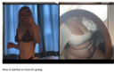 Despite hotleaks not showing dates that images are posted as far as I know, she definitely did pander to the gainer crowd because the two images I posted are right next to each other, so she did pander to things like weight gain enthusiasts even if she never did stuffings.