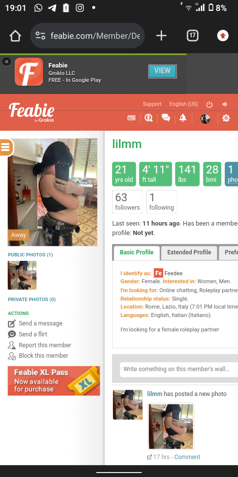 bro you fucked up with the screenshot it literally says the location where she live. btw its a pleasure knowing that there are feedees from italy good to know.