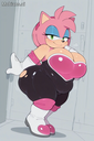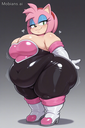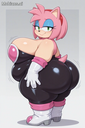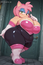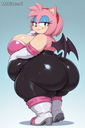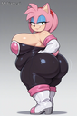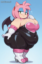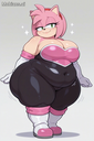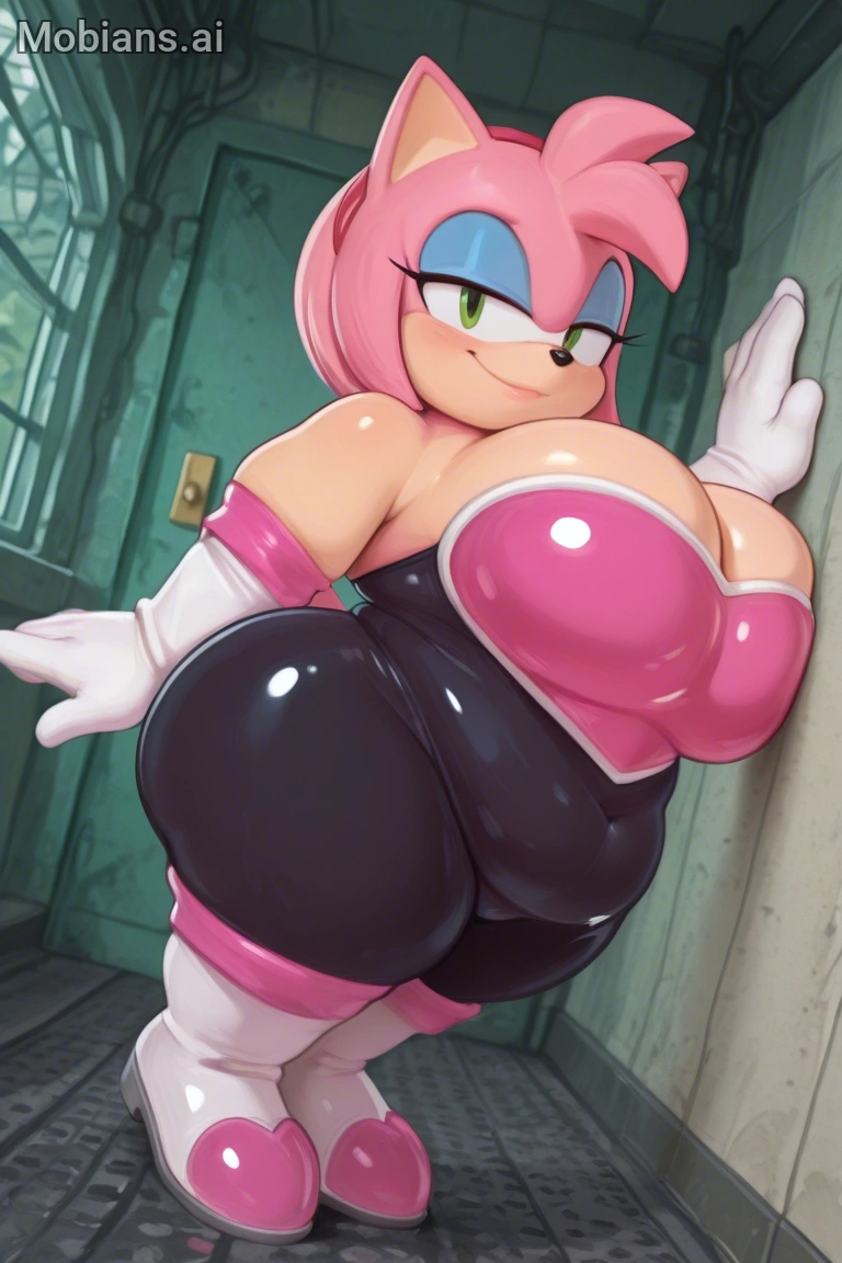 masterpiece, best quality, amazing quality, amy rose, furry female, pink fur, short hair, pink hairband, green eyes, pink hair, bare shoulders, rouge the bat \(cosplay), bare shoulders, strapless, long white elbow gloves, black bodysuit, white long knee high-heel boots, 1 girl, solo, full body, standing up, looking at viewer, half-closed eyes, blue eyeshadow, seductive smile, (morbidly obese: 1.3), (huge breasts, huge butt, huge thighs), wide hips, (hyper belly), huge belly overhang, belly rolls, fat rolls, fat shoulders, arm rolls, fat arms, leg rolls, fat thighs, fat hands, chubby cheeks, double chin, sonic_style, straining clothing, tight clothes, no wings,, rougecosplay, {{{best shadows}}} ,{{{Masterpiece}}} , dynamic angle, {{{{high attention to detail}}}}, wide hips, high resolution, extremely detailed body, {{{double chin}}},,belly rolls, realistic, squishy body ,blushing, big breasts, obese,{{{hugebelly}}}, torn clothes, big butt, zoomed out, glossy body,, very aesthetic, flat color, Wardobe malfunction rendered, human, multiple tails, old, oldest, cartoon, graphic, text, painting, crayon, graphite, abstract, glitch, deformed, mutated, ugly, disfigured, long body, low-res, bad anatomy, bad hands, missing fingers, extra digits, fewer digits, very displeasing, (worse quality: 1.2, bad quality: 1,2), sketch, jpeg artifacts, signature, watermark, username, simple background, conjoined, bad, ai-generated, out of focus, NSFW, worst quality, bad quality, low quality, lowres, scan artifacts, jpeg artifacts, sketch, (worst quality, bad quality: 1.1), lowres, jpeg, artifacts, signature, username, text, logo, bad anatomy, artist name, artist logo, extra limbs, extra digit, extra legs, extra legs and arms, disfigured, missing arms, too many fingers, fused fingers, missing fingers, unclear eyes, blur, film grain, noise, ((bat wings)), wings Tried to a SSBBW Version of Amy Rouge
