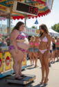 第三张图:在保持画风不变,角色整体、细节设定不变的条件下,角色到达肥胖的体型。身材完全走形,但还未到达ssbbw的程度。