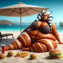 After Order 66, Ahsoka ended up working at Dex's Diner. He was a close friend of Master Kenobi, and allowed Ahsoka to work for him, albeit under an alias. After the first month, she was fatter. After the first year, she was obese. By the time the Rebellion came into prominince, Ahsoka's days of fighting were LONG over. She waddled through the diner, sluggish as a slug. The Holonet news about the Death Star's destruction was inaudible over Ahsoka's wet nasty belches, having eaten a dozen of Dex's famous sliders in a single sitting during her 4th lunch break.