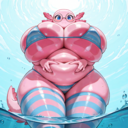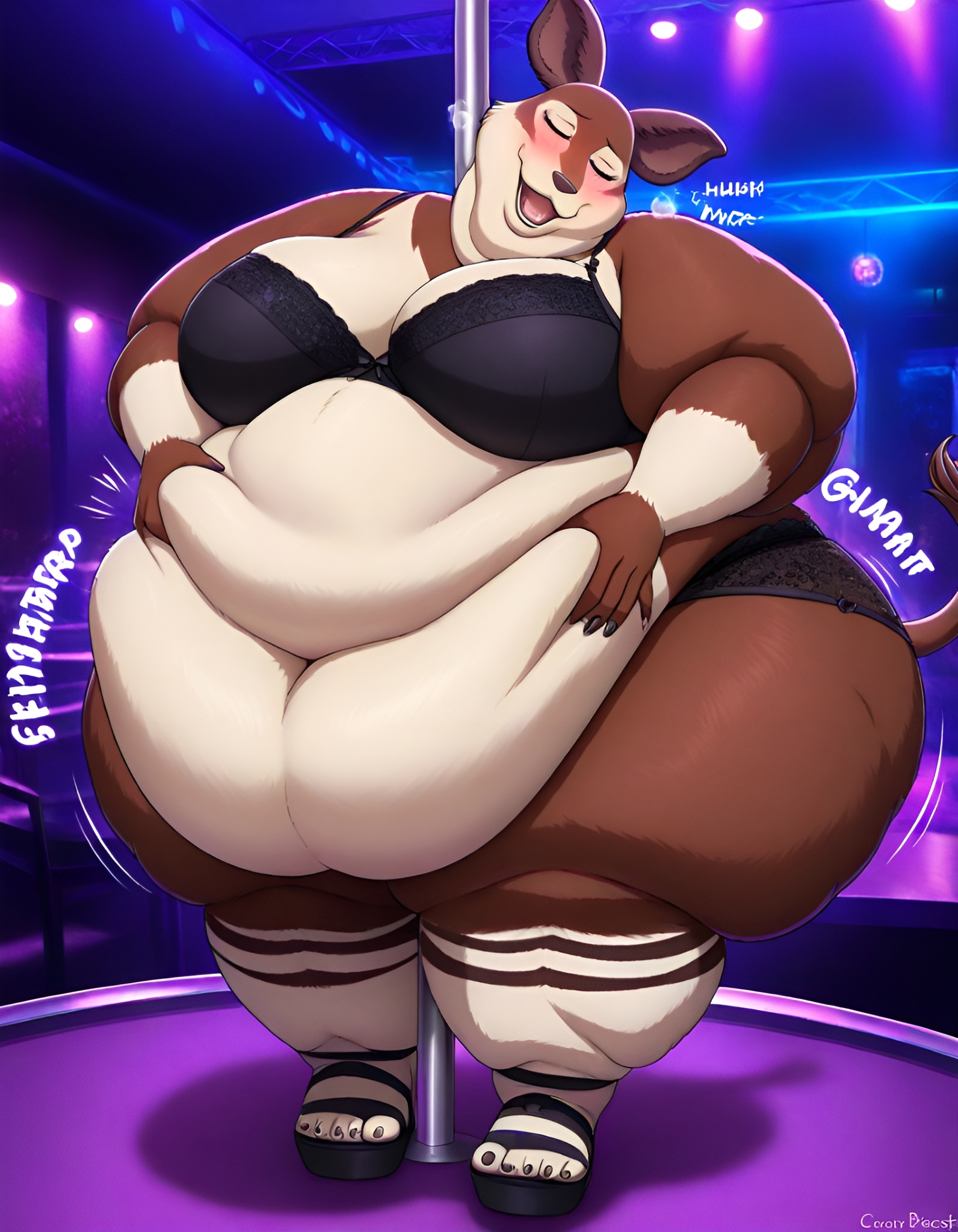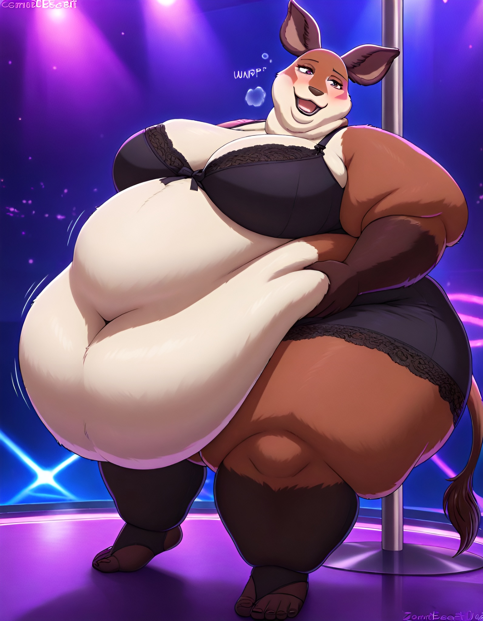 The obese subject waddles forward, the subjects fat jiggles with every movement
