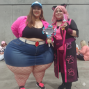 >>37367 First prompt was after I wrote "show me how they'd look 10lbs heavier" and it just reposted the same picture lol The one on the right: Generate the girl on the right as an xl bbw with massive thighs, chubby cheeks and a huge round gut, her midriff protruding out and tied up with a purple waistband. Her fat body is draped in a black cloak with pink paw-print The one on the left was a variation of: generate the fictional character on the left as an extra large bbw who has huge wide hips, massive fat thighs, chunky calves and a chubby belly. She is wearing a tight white belt with gold studs and a red lozenge-shaped crystal as a buckle, pink fishnet stockings, a black crop-top, and a puffy pink crop-jacket. Her denim skirt is skin tight on her fat thighs. I don't have the exact prompt saved since I kept editing my initial message afterwards