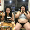 主角是16岁的胖校花,中国人。照明不均 。完全素颜,大饼脸,黑黄皮,高鼻梁,平直粗眉,大眼睛双眼皮,小嘴。穿着休闲装,长发及腰。 楼下餐厅里,2015年的装修风格,热气腾腾的环境,窗外是街道,桌面上有筷子筒,两杯奶茶放在桌面上,木制的桌子摆着烤鱼,女主坐在对面用筷子捧碗高兴吃米饭。手机随意的打卡式拍照,无任何拍摄技巧,导致暗处略微的曝光不足,路灯出现轻微眩光,画面带有些许噪点,镜头有不易察觉的灰尘。近距离拍摄人物。 左图女主坐着吃饭,右图女主坐着兴奋吃两个巧克力冰淇淋。 由两个平凡无奇的瞬间组成变胖对比图,展现爆肥带来的特写部位的肥满化巨变。 保持女主眉眼与动作统一,强调变胖爆肥变化。健康丰满有肌肉->极端严重肥胖像是肥猪。she gained over 600lbs. 女主在左图健康丰满,身材匀称恰到好处,有结实肌肉线条。 女主在右图穿着和左图一样的衣服,但是变得非常肥胖圆润。有着厚实的双下巴,宽大的胖脸和过度饱满的脸颊,非常肉乎乎的,胖得比最胖最肥的情况还要胖体型更圆更庞大,身材完全走形。人物爆肥,胖得轮廓圆润丰满,高体脂率高体重,赘肉肥硕向外溢出,体型庞大肥满,手臂粗胖,赘肉胖得相互挤压,腿部臀部胖得比腰还粗,圆滚滚又肥又大,腹部至少要有两层游泳圈,靠下方的那层会更加向外突出。面部又大又圆胖乎乎的,脸颊过度饱满,整体膨胀肥胖。极端严重肥胖,夸张extremely fat and massive。