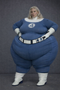 Can someone try making this picture fat? I tried a couple of different prompts, but almost all of the ones I generated removed her belly button for some reason.