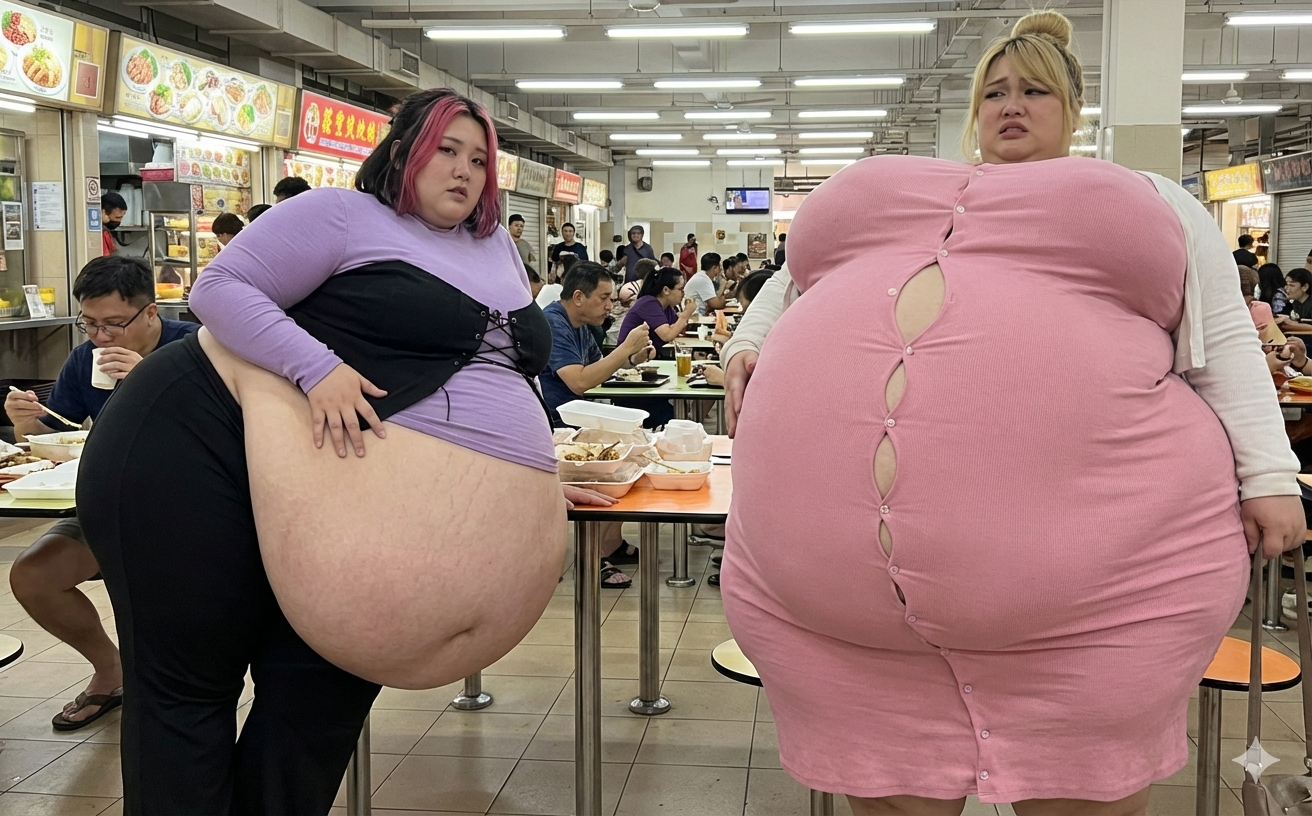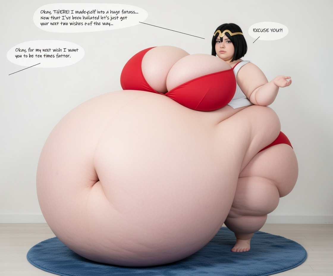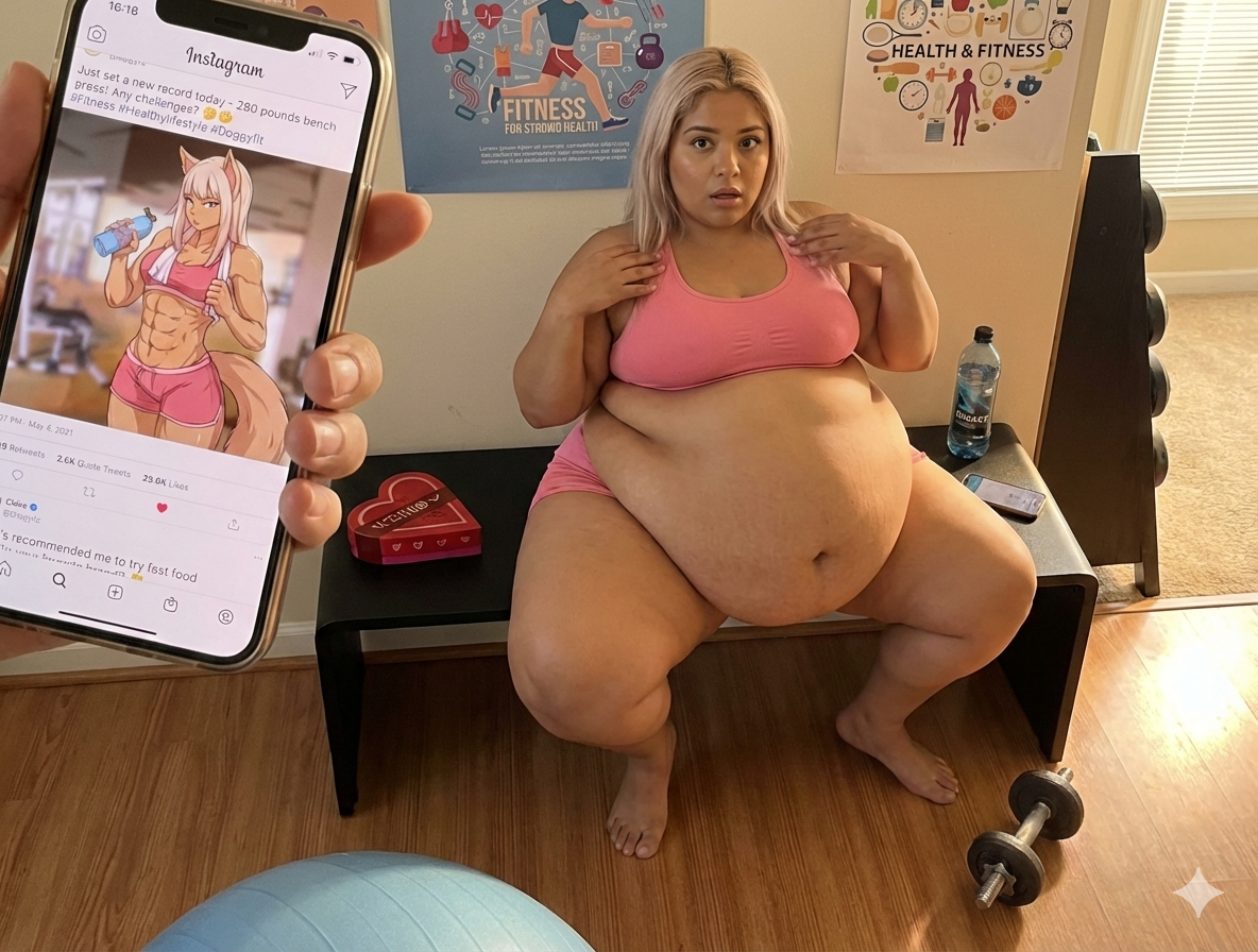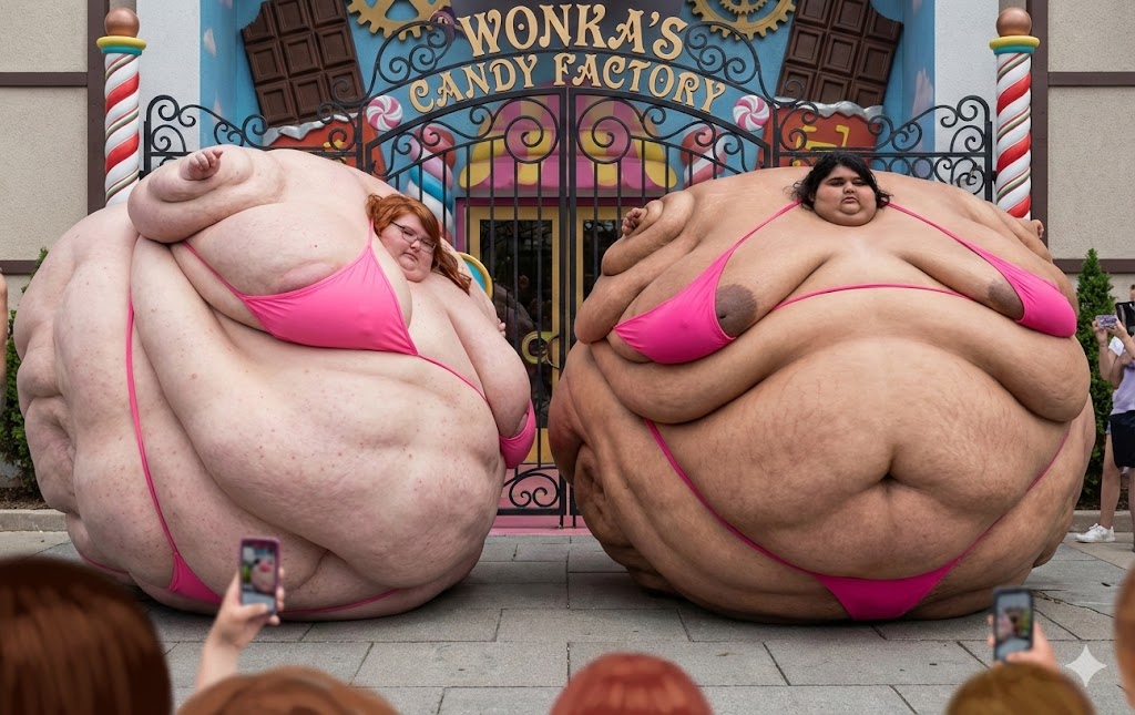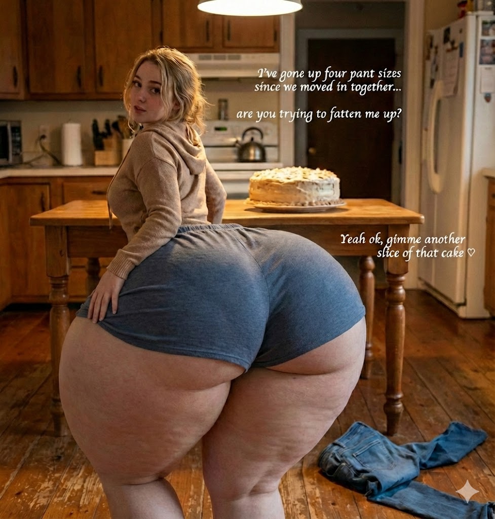 >>39362 >>39371 I would start with an image already generated with a pretty appealing huge body type (it loves to shrink bodies down a little in the transition), and put in something like >Create a low-quality candid photo (captured by another person on their phone camera) of this same subject, taken in/on... [setting of your choice; "a cramped en-suite bathroom", "a messy suburban garage" etc] >Bad lighting, wide angle. The subject should appear to be the fattest woman on earth, extremely super-obese. Extreme overwhelming body fat interacts with the environment, squishes against things, spills onto things, etc. Body fat hangs loosely and is extremely voluminous and doughy. Preserve the subject's extreme body type exactly. Pose is natural, playful, and imperfect; composition is asymmetrical. Subject is grotesquely huge with fat, like a blob; she is like an ocean of fat. Pose should be different from the input image. > >The image should be indistinguishable from a real photo taken casually by a real person for social media. Focus on depiction of extreme, unbelievably massive, blob-like super-obesity. for the selfie ones, instead of "create a low-quality candid photo (etc etc)" it's more like "create a full-body selfie" it helps if the input image already has a little bit of that "compressed digital phone-camera photo" stank