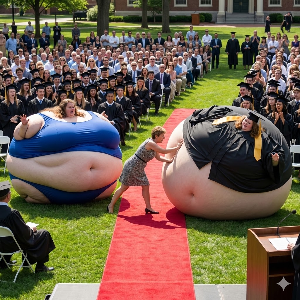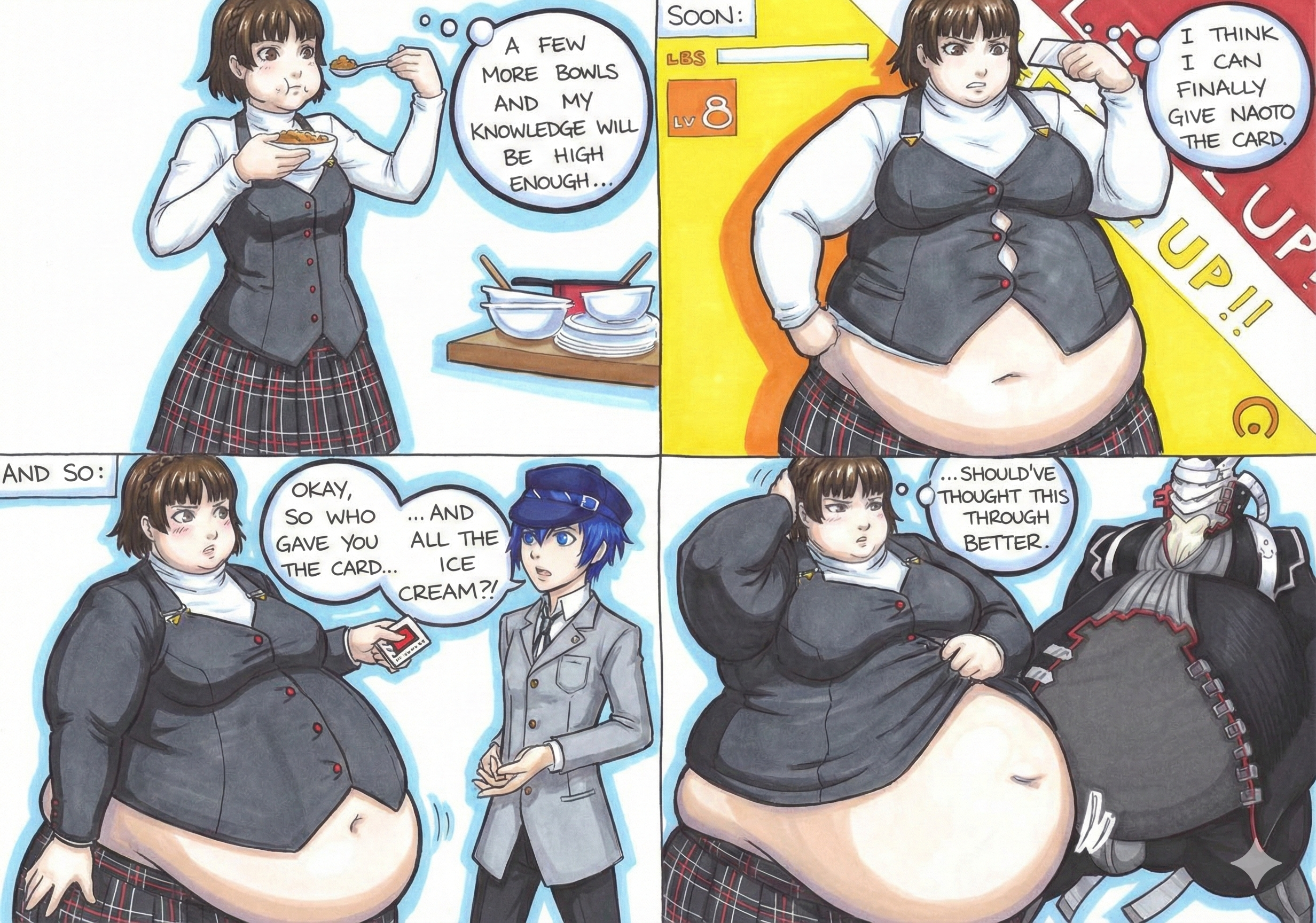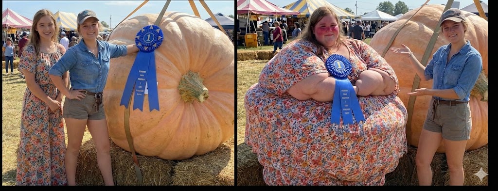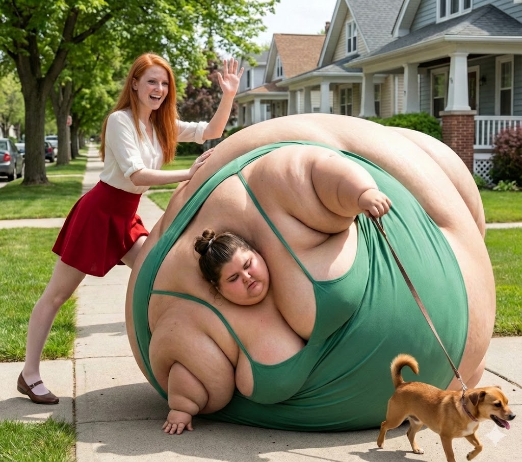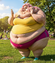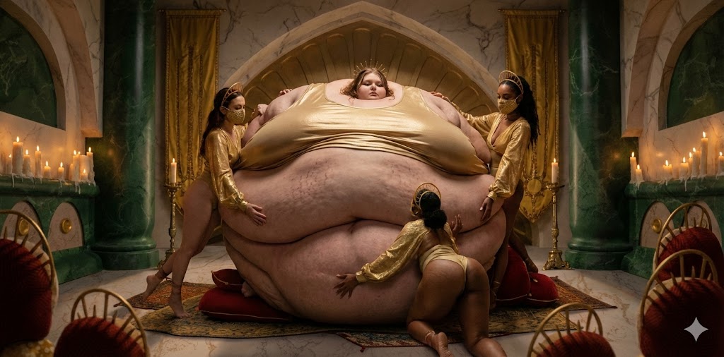 >>39362 >>39371 I would start with an image already generated with a pretty appealing huge body type (it loves to shrink bodies down a little in the transition), and put in something like >Create a low-quality candid photo (captured by another person on their phone camera) of this same subject, taken in/on... [setting of your choice; "a cramped en-suite bathroom", "a messy suburban garage" etc] >Bad lighting, wide angle. The subject should appear to be the fattest woman on earth, extremely super-obese. Extreme overwhelming body fat interacts with the environment, squishes against things, spills onto things, etc. Body fat hangs loosely and is extremely voluminous and doughy. Preserve the subject's extreme body type exactly. Pose is natural, playful, and imperfect; composition is asymmetrical. Subject is grotesquely huge with fat, like a blob; she is like an ocean of fat. Pose should be different from the input image. > >The image should be indistinguishable from a real photo taken casually by a real person for social media. Focus on depiction of extreme, unbelievably massive, blob-like super-obesity. for the selfie ones, instead of "create a low-quality candid photo (etc etc)" it's more like "create a full-body selfie" it helps if the input image already has a little bit of that "compressed digital phone-camera photo" stank