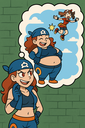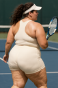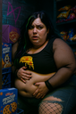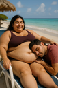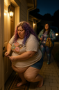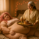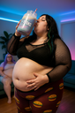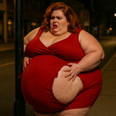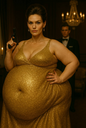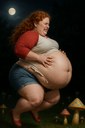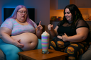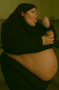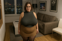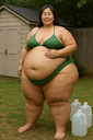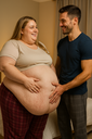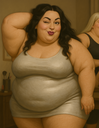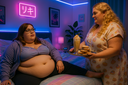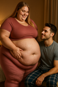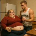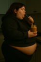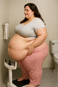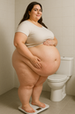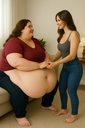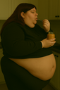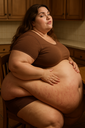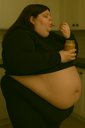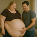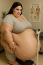 September hit 320 pounds. Her belly dominated, a 10-inch overhang that slapped her thighs when walking. Breasts rested on it, creating a shelf effect. Buttocks protruded shelf-like too, making chairs creak. She panted after short walks, but the bars' energy kept her functional.