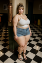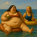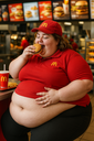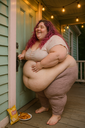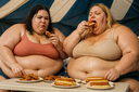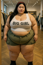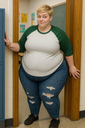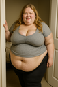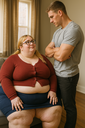 Summer heat amplified everything. By July, at 270 pounds, Emily's bust was a 42I, impossible to hide. Tops rode up, exposing her belly rolls—now three distinct layers when sitting. Her waist was 36 inches, hips 48 inches, creating a pear-like shape atop her original hourglass. Thighs rubbed constantly, 32 inches each, and her knees ached from the load. She waddled slightly, her gait adjusted for balance.