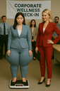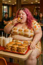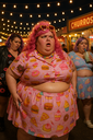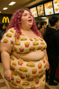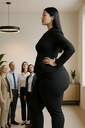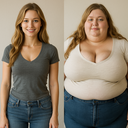 Clothing issues mounted. Her work uniform pants split at the seams one day, forcing her to borrow a larger pair from a coworker. "Oopsie! Must've sat wrong," she laughed. Her buttocks, now fuller and heart-shaped, strained leggings to transparency. She started wearing flowy dresses to hide the growing muffin top, but her bust refused to be contained, buttons popping during shifts.