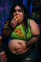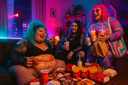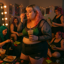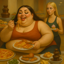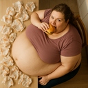 In August, 295 pounds, health tweaks appeared: mild sleep apnea from neck fat, and her feet swelled into size 9 shoes (up from 7). Her skin stretched, more marks on her inner thighs and underarms. But her hair grew thicker from the protein, and her nails stronger—small perks. She quit dating, focusing on "self-care" (aka more TV and bars). Friends expressed concern, but Emily brushed it off: "I'm just curvier! It's trendy!"