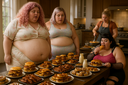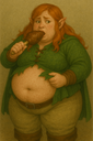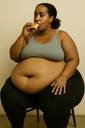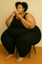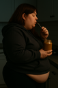June brought her to 245 pounds. Her arms, now 16 inches around, had bingo wings that flapped when she waved. Her hips swayed dramatically, knocking into tables at work. Cellulite covered her thighs and butt like orange peel, and varicose veins hinted at the strain. She started sweating more, her body heat rising from the insulation. Yet, she persisted with the bars, convinced they were her "secret to glow."