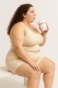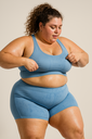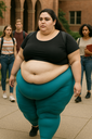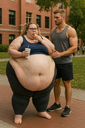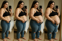 By month's end, at 140 pounds, Emily noticed her thighs rubbing together slightly when she walked. Her once-defined abs were hidden under a thin layer of pudge, and her buttocks felt rounder, jiggling a bit more in her yoga pants. She tried on an old dress for a date and found it tight around the bust and hips. "Huh, dryers must shrink clothes," she mused, oblivious as ever.
