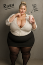 By mid-January, her bust felt a tad fuller. Her bras, once comfortably fitting her 34DD cups, now dug slightly into her shoulders. The overflow created a subtle cleavage that peeked out from her V-neck work shirts, earning her extra tips from regulars. "Must be that time of the month," she giggled, adjusting her top. Her waist expanded by half an inch to 26.5, and her hips to 36.5, giving her a softer, more plush feel when she hugged her friends. Energy-wise, she felt amazing—bouncy and alert—but she started craving sweets more, often pairing the bar with ice cream, unknowingly adding even more calories.