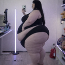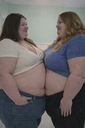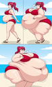in the during picture her body got obese, held a tiny white marker board with the written sentence "DAYS LEFT: 150" with food doodles. in the after picture, she is well over 1000 lbs and monstruously obese, particular emphasis on how obese she is, monstrously blob knees, stretchy obese wide navel and obese groin hanging out, monstrously blubbery round face, monstrously obese humongous waist, she has obese pillowy arms and fat rolls on her upper arms. humongous knees, blushed cheeks, cute smile. festive numbers balloons "400lb",