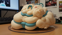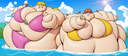>>37367 First prompt was after I wrote "show me how they'd look 10lbs heavier" and it just reposted the same picture lol The one on the right: Generate the girl on the right as an xl bbw with massive thighs, chubby cheeks and a huge round gut, her midriff protruding out and tied up with a purple waistband. Her fat body is draped in a black cloak with pink paw-print The one on the left was a variation of: generate the fictional character on the left as an extra large bbw who has huge wide hips, massive fat thighs, chunky calves and a chubby belly. She is wearing a tight white belt with gold studs and a red lozenge-shaped crystal as a buckle, pink fishnet stockings, a black crop-top, and a puffy pink crop-jacket. Her denim skirt is skin tight on her fat thighs. I don't have the exact prompt saved since I kept editing my initial message afterwards