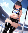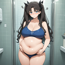 >>37740 1girl, solo, (feet out of frame), tohsaka rin, booth seating, sitting, black thighhighs, black skirt, thick thighs, overweight, midriff peek, blush, looking at viewer, (simple background:0.8), masterpiece, best quality, amazing quality, (magentapeel, rkrk12:0.6) + the hyper girls lora probably