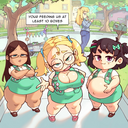 >>40706 Now four eyes looks like she's fantasizing about how much you can buy to stuff her belly with, and the brownie now looks very determined like she's counting every calorie and checking how dense the food is, just to maximize the size of her cherished gut. Leader's still just in it for the money. >>40714 A lot bigger than that. I never noticed it but is AI bad at direct behind shots of huge fat asses? Looked through what I've found and it seems like undercuts the volume needed to really make the buns pop if it isn't at least slightly at an angle.
