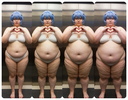 in the during picture her body got obese, held a tiny white marker board with the written sentence "DAYS LEFT: 150" with food doodles. in the after picture, she is well over 1000 lbs and monstruously obese, particular emphasis on how obese she is, monstrously blob knees, stretchy obese wide navel and obese groin hanging out, monstrously blubbery round face, monstrously obese humongous waist, she has obese pillowy arms and fat rolls on her upper arms. humongous knees, blushed cheeks, cute smile. festive numbers balloons "400lb",