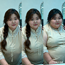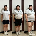 由三个平凡无奇的瞬间组成变胖对比图,展现爆肥带来的所有部位的肥满化巨变。左中右三格构图。平凡无奇的手机摄影。 女主保持眉眼与造型统一,强调变胖爆肥逐步变化。人物越来越胖得轮廓圆润丰满,高体脂率高体重,赘肉肥硕向外溢出,体型庞大肥满粗胖并且胖得没有缝隙,圆滚滚的,面部又大又圆胖乎乎的,脸颊过度饱满,整体膨胀肥胖。极端严重肥胖,夸张extremely obese。从左到右排布三个阶段。 左图女主壮硕有肌肉,白嫩丰满脸比较圆。中图女主到达非常肥胖的程度,完全走形,体脂率暴涨。脸要更大更圆更双下巴,补充肉鼓鼓的脸颊。腹部至少要有两层游泳圈,靠下方的那层会更加向外突出。右图女主彻底超越想象的肥胖堕落,比世界最胖的还要胖得多,非常胖得没有轮廓完全变成一座肉山,赘肉大量向外溢出,夸张庞大圆润和肥满,面部胖得难以辨认脸更胖更肉鼓鼓。