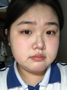 随手拍的过曝的手机摄影。主角是17岁的丰满校花,非常肥胖圆润。有着厚实的双下巴,宽大的胖脸和过度饱满的脸颊,非常肉乎乎的。闪光灯效果,看向镜头流泪。面部特写近距离。略偏侧面角度。方圆脸,冷白皮,高鼻梁,平直粗眉,大眼睛双眼皮,杏眼。穿中国高中校服,少女发型。