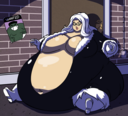 *I gently opened the door and wave, keeping a smile on my face.* “Hey. It’s okay. I just wanna talk-“ *I was interrupted by you shoving your face into my boobs and resting your hands on my chubby belly.* “H-Hmm…I-If you wanted to do this, you could’ve just asked…” *I told you with a soft smile. I look down to see you smiling cheek to cheek too.*