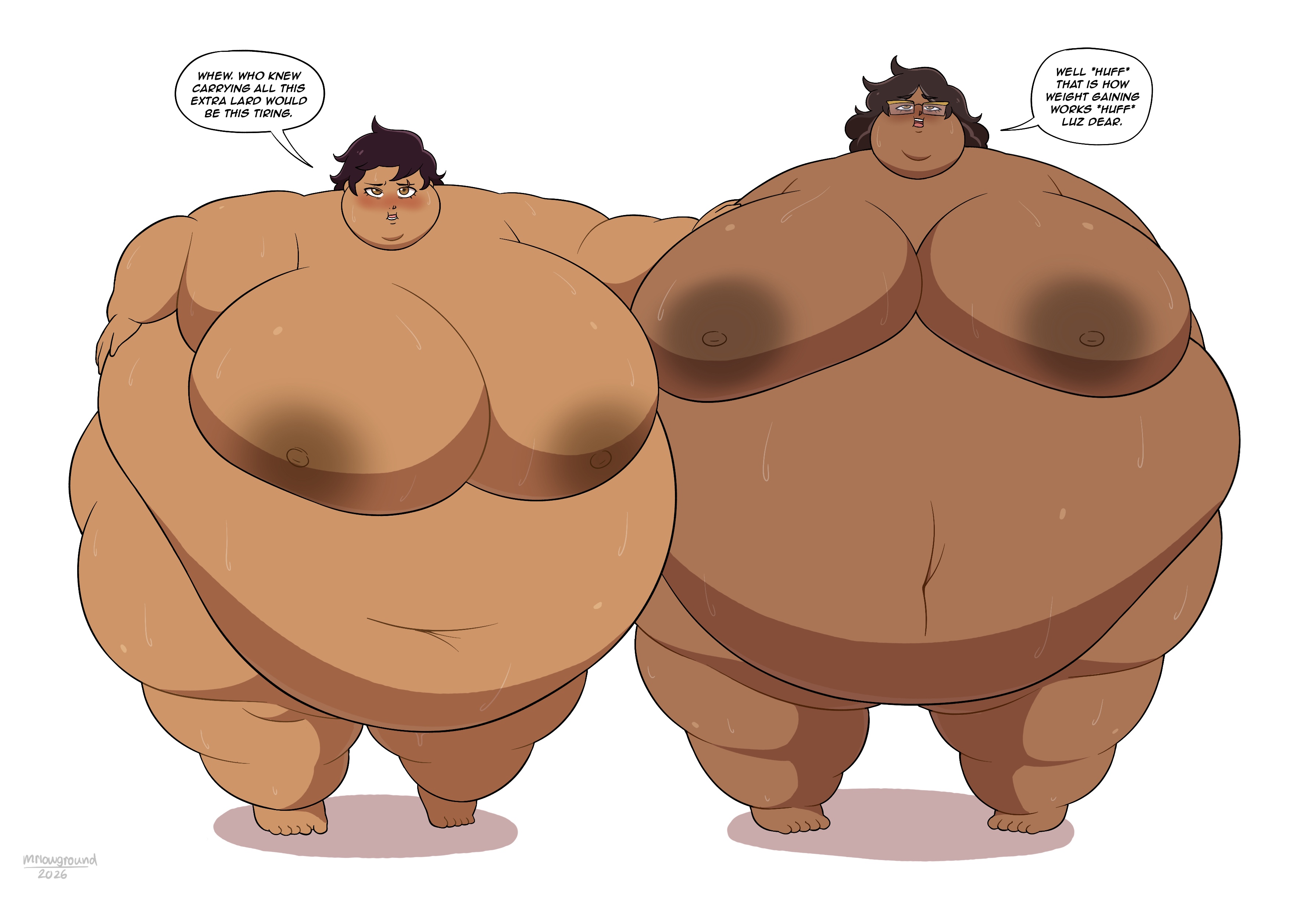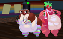 Oh I actually love their excited, buttery hooting and hollering. But anyway, Ribbon could totally fill up and widen to the point that, stood next to Ripple, she'd be towering over the tallest fairy in Ripple Star. Looking down at everyone while resting against her own gigantic, wobbling ass and thighs that lift her off the ground.