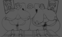 Mimi in a swimsuit from Paper Mario and Goldeen from Pokémon Does anyone have these obese drawings?